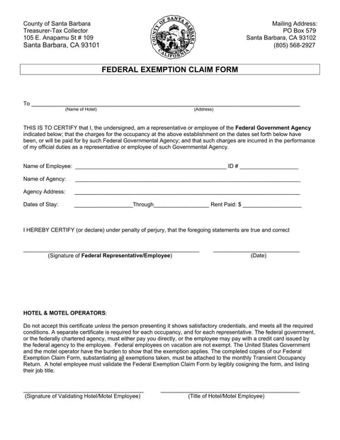 Santa Barbara Federal Exemption Claim Form Fill and sign with Lumin