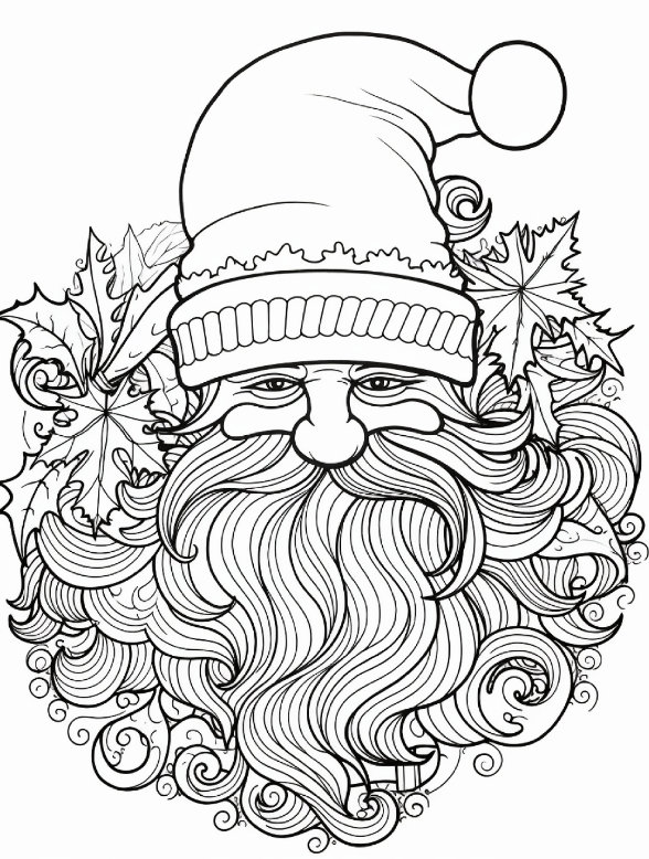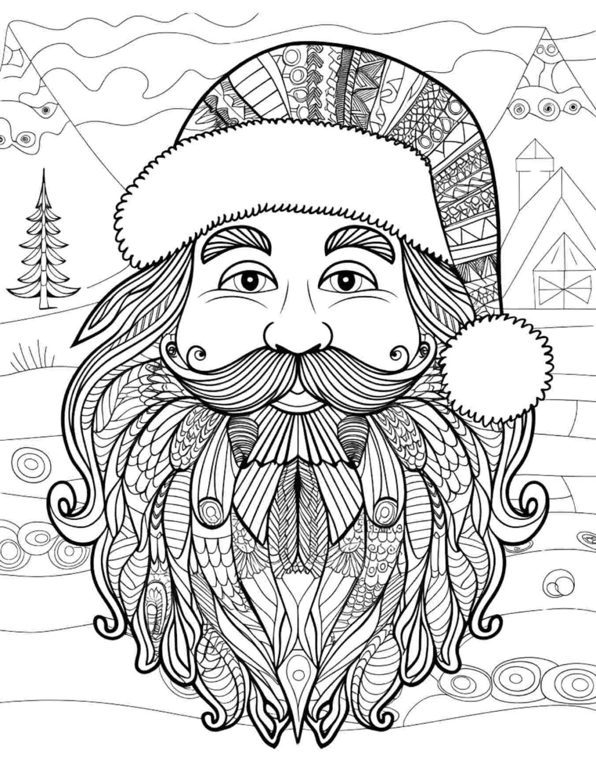 Christmas For Adults Santa Claus Face Intricate Doodle Coloring page