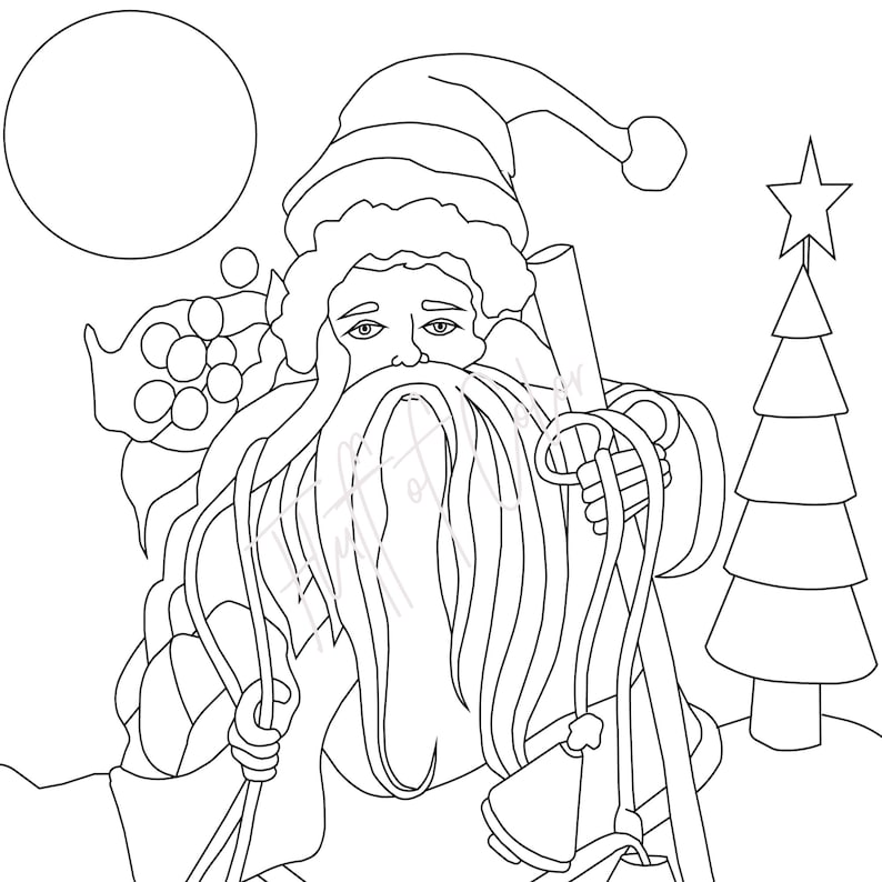 Woodland Santa PDF Printable Coloring Page for Adults Instant