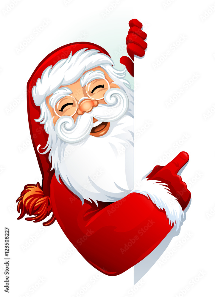 Vector illustration of cartoon Santa Claus character showing a blank
