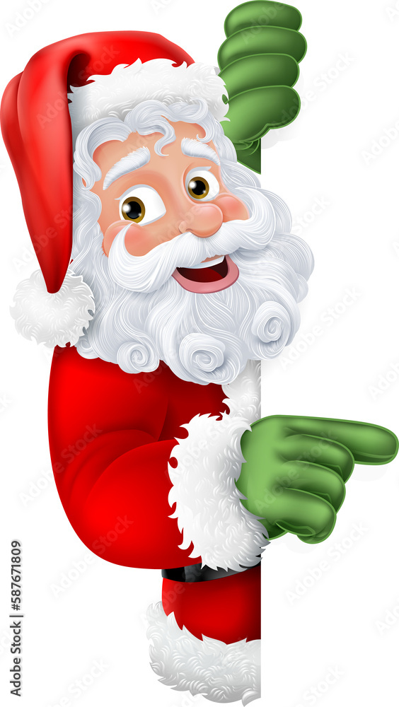 Cartoon Santa Claus Father Christmas Peeking Sign Stock Illustration