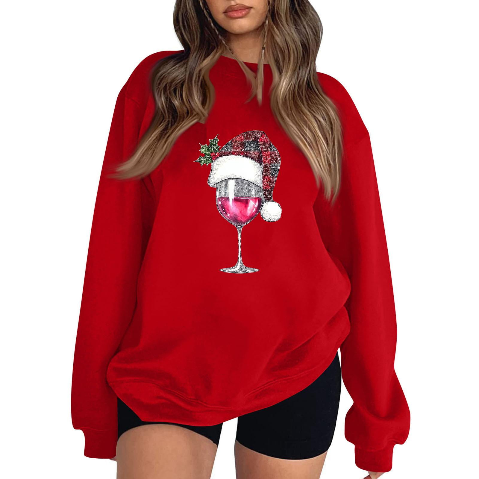 Christmas Sweatshirts for Women 2025 Tops Red Wine Glass Ugly Shirts