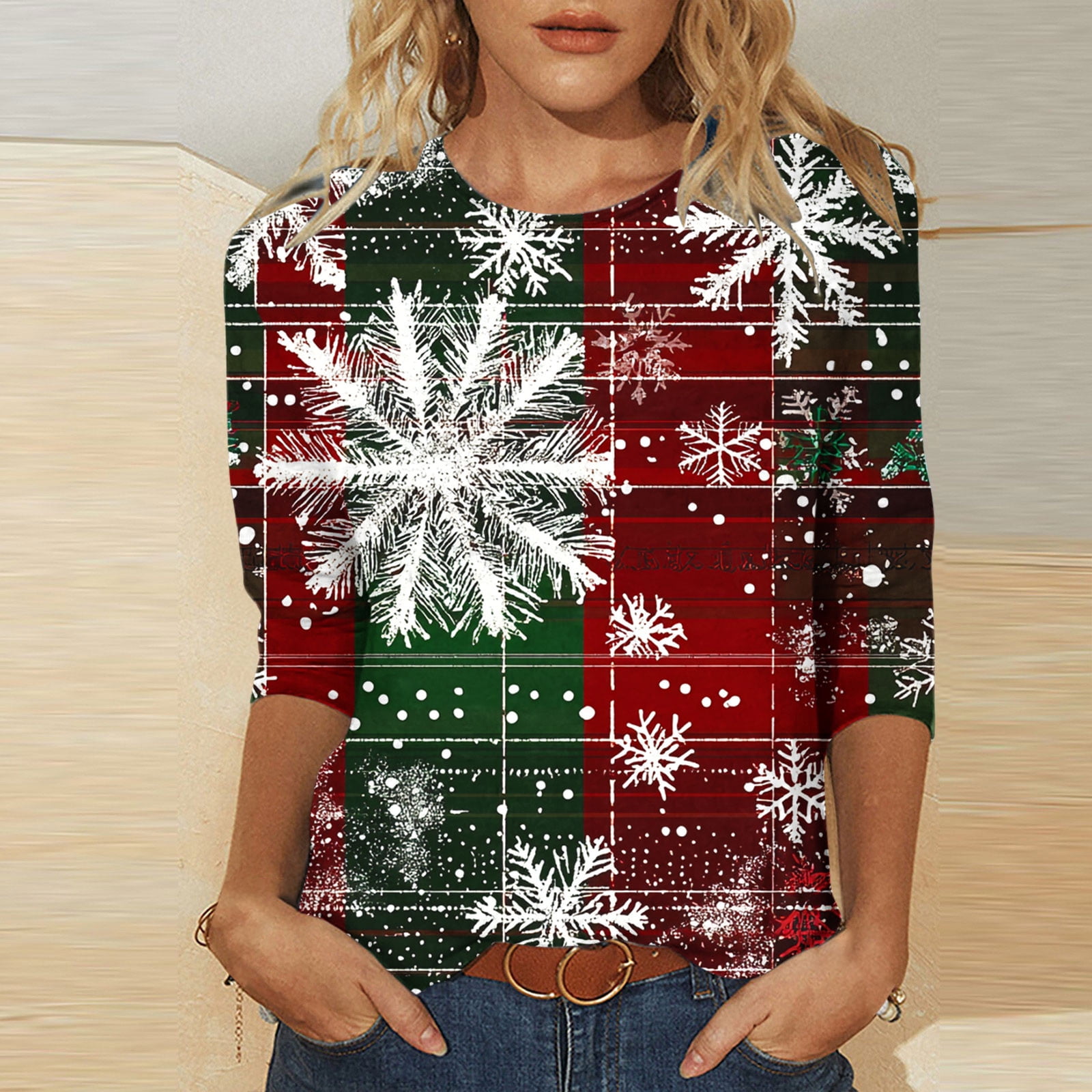 Mifsaly Plus Size Merry Christmas Shirts for Women 3/4 Sleeve Xmas