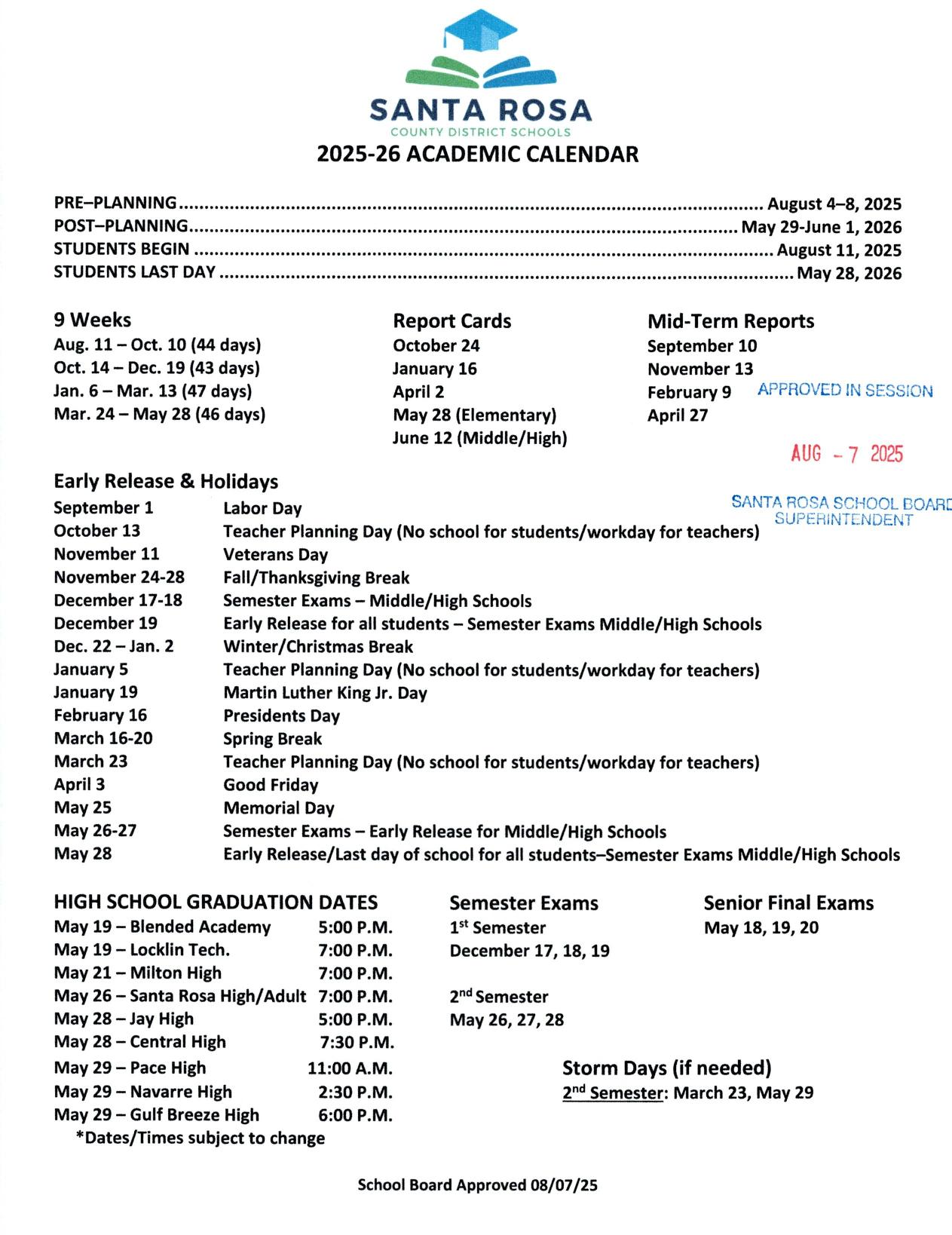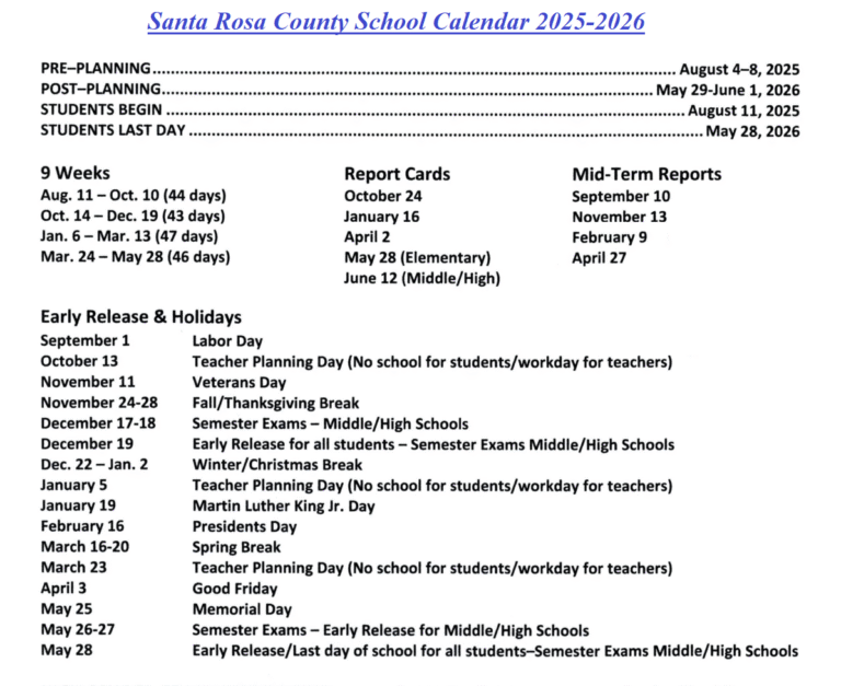 Santa Rosa County School Calendar 2025 2026 My School District Calendar