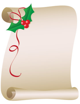 Blank scroll (parchment) with copy space in a Christmas and Santa