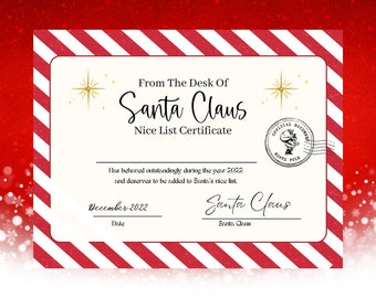 EDITABLE Nice List Certificate Printable Santas Nice List Etsy UK