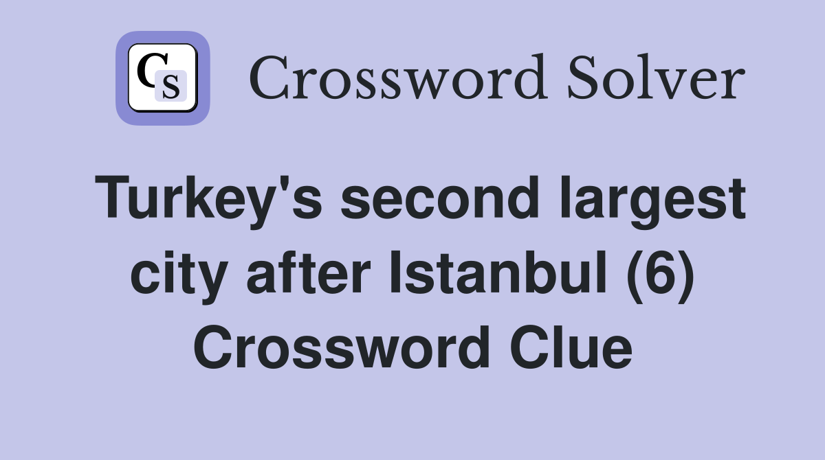 Turkey #39 s second largest city after Istanbul (6) Crossword Clue