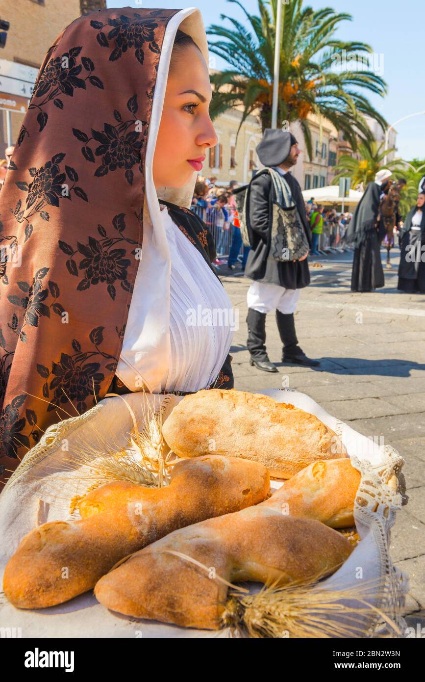 Woman wearing a traditional Sardinian costume at the religious feast