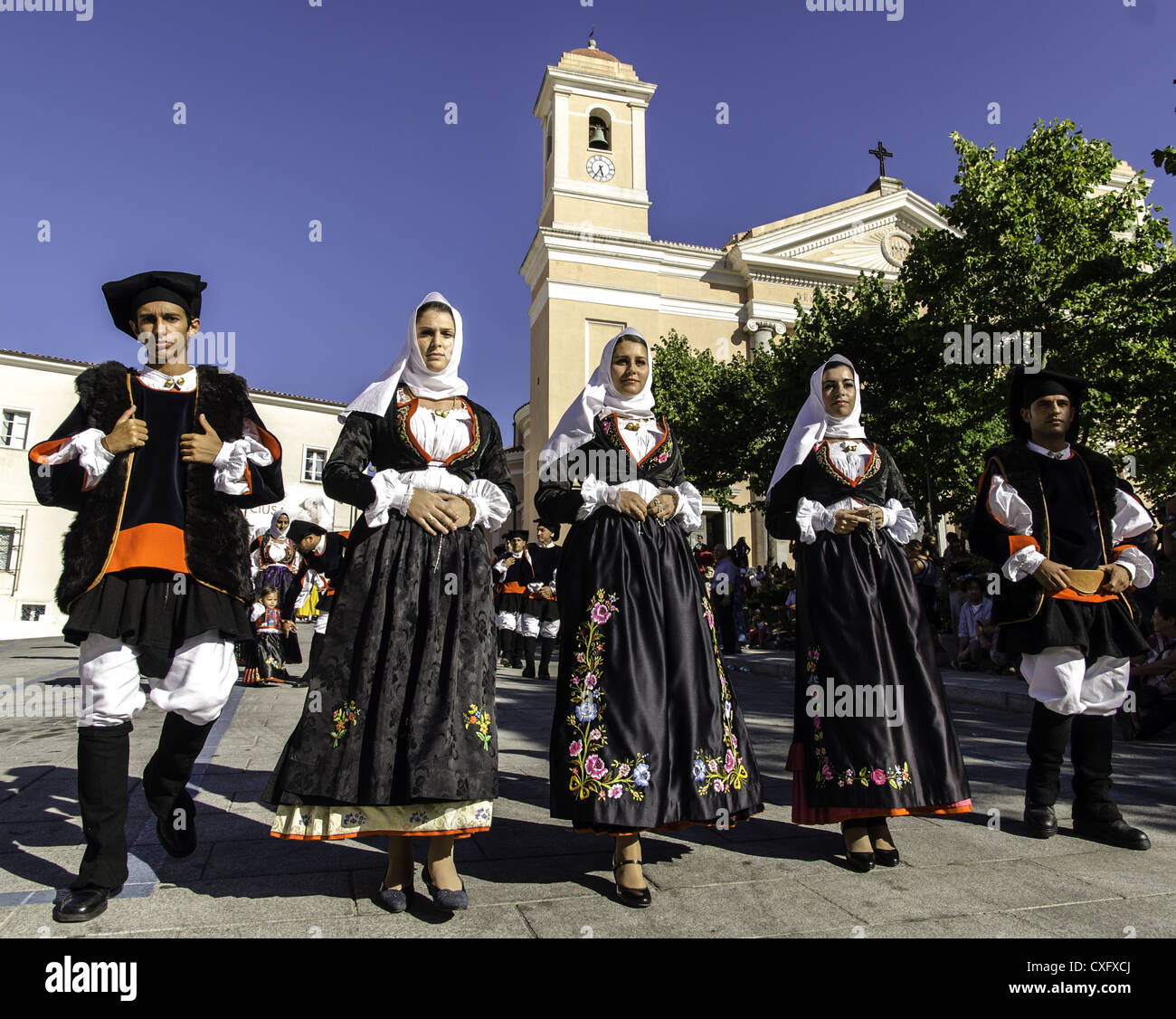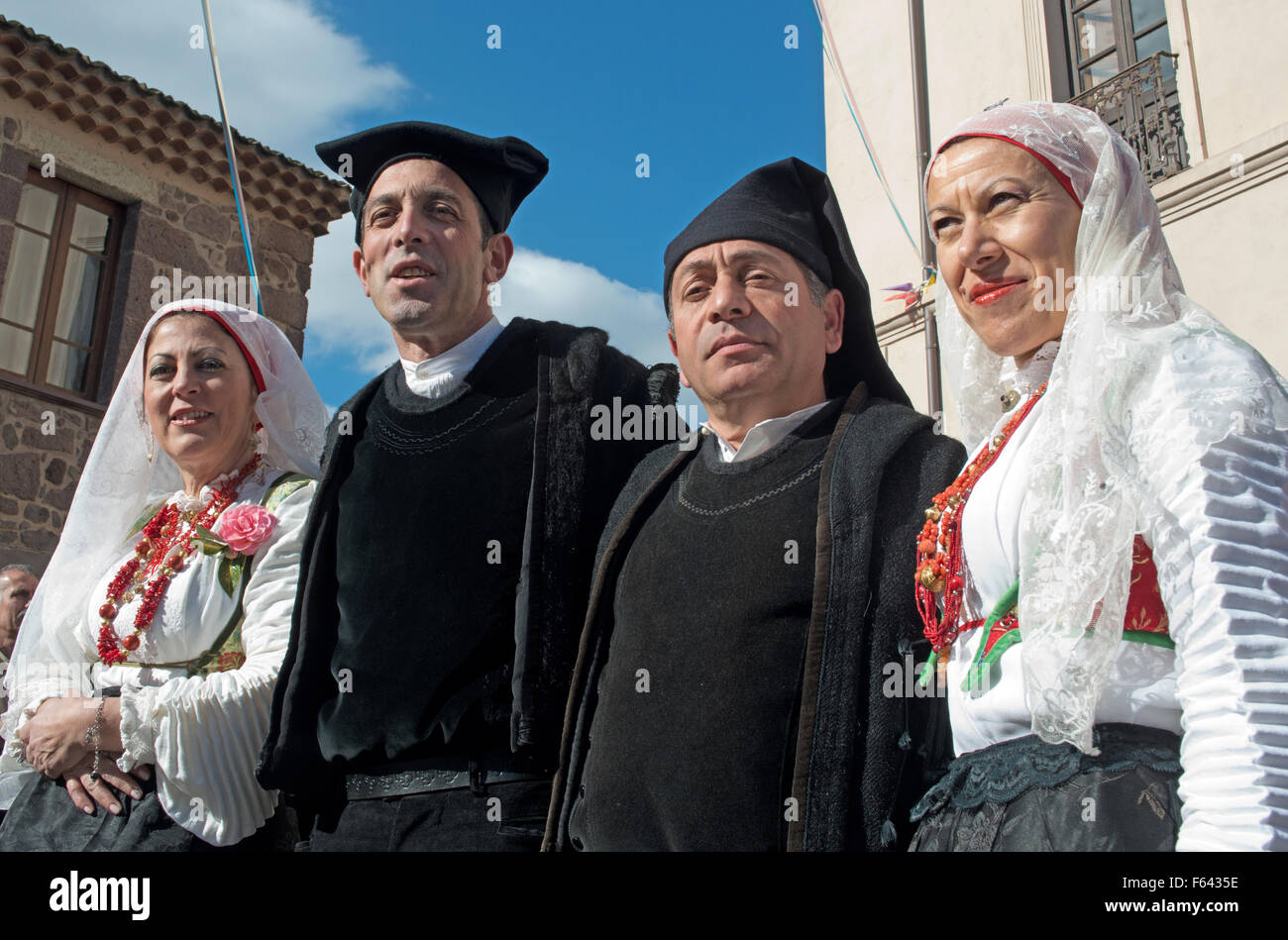 portrait of sardinian people in traditional clothes during a Stock