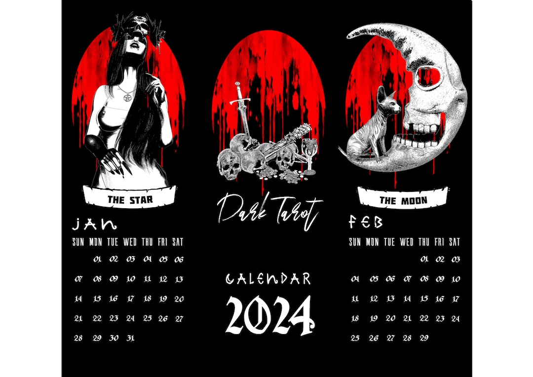 Wall Calendar 2024 Dark Tarot Calendar Postcard Calendar Goth