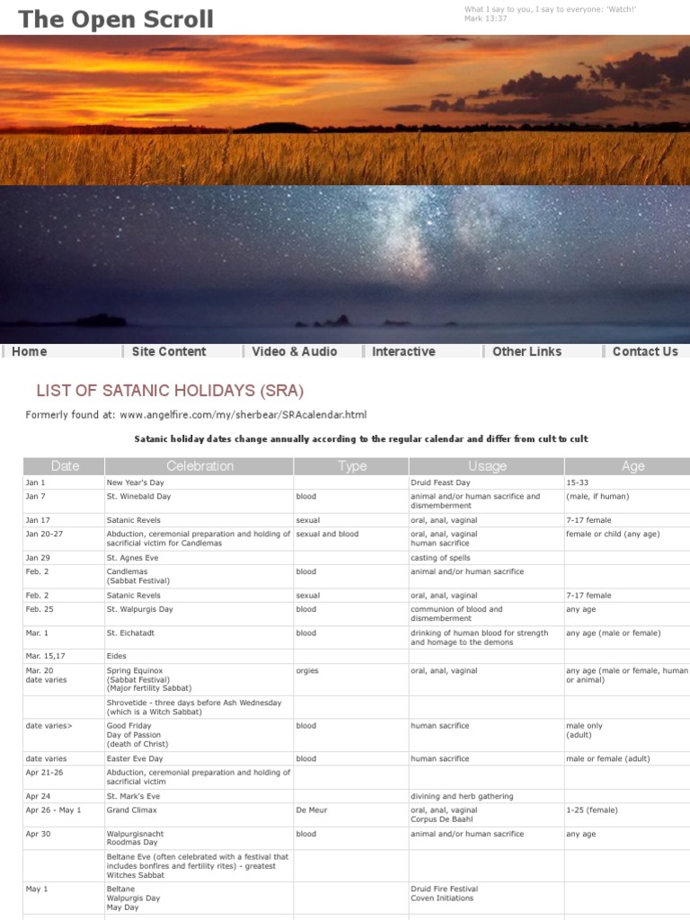 The Satanic Ritual Calendar (Satanic Holidays) Vigilant Links