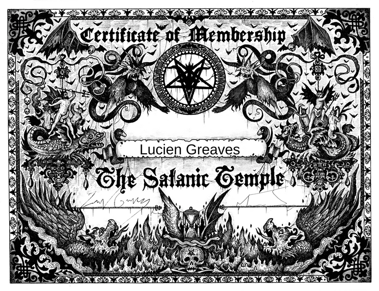 Satanic Temple Certificate