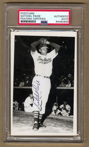 Satchel Paige Signed AUTO Cleveland Indians RPPC Real Photo Post Card