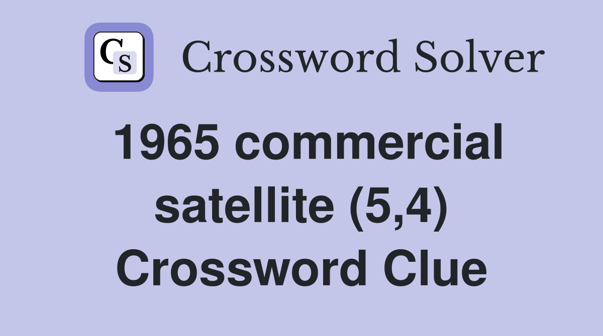 1965 commercial satellite (5 4) Crossword Clue Answers Crossword Solver