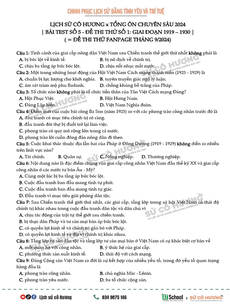 LỊCH SỬ CÔ HƯƠNG x TỔNG ÔN CHUYÊN SÂU 2024 BÀI TEST SỐ 5 ĐỀ THI THỬ