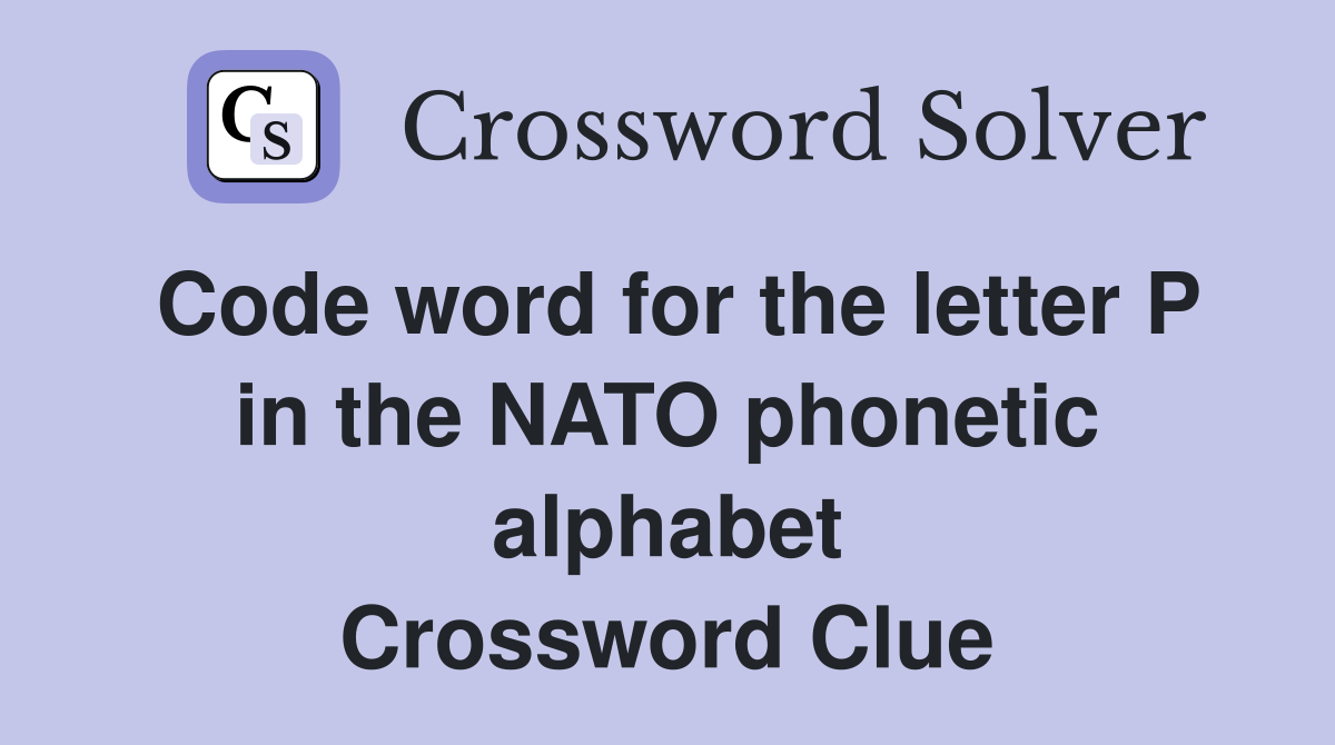 Code word for the letter P in the NATO phonetic alphabet Crossword