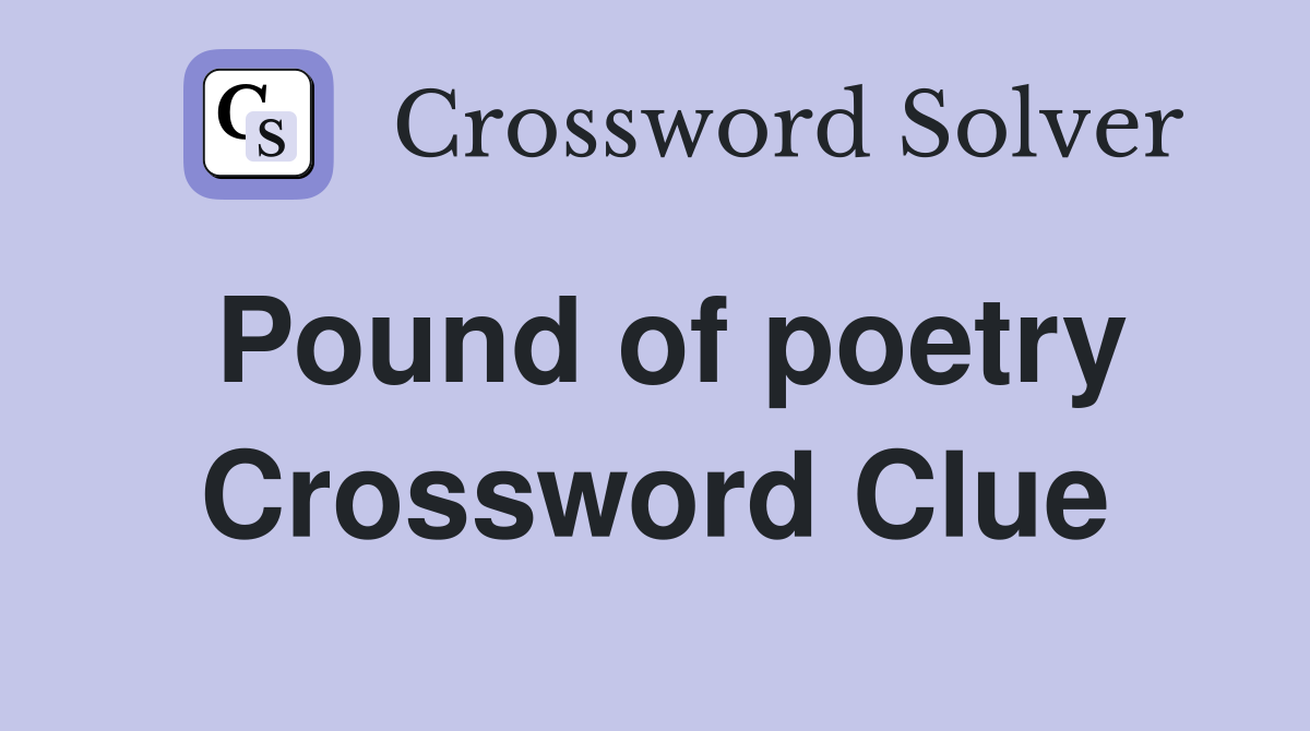 Pound of poetry Crossword Clue Answers Crossword Solver