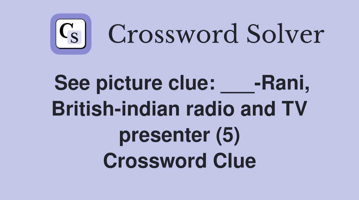 See picture clue: Rani British indian radio and TV presenter (5