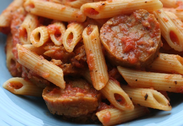 V e g a n D a d: Penne with Seitan Sausage and Tomato Sauce