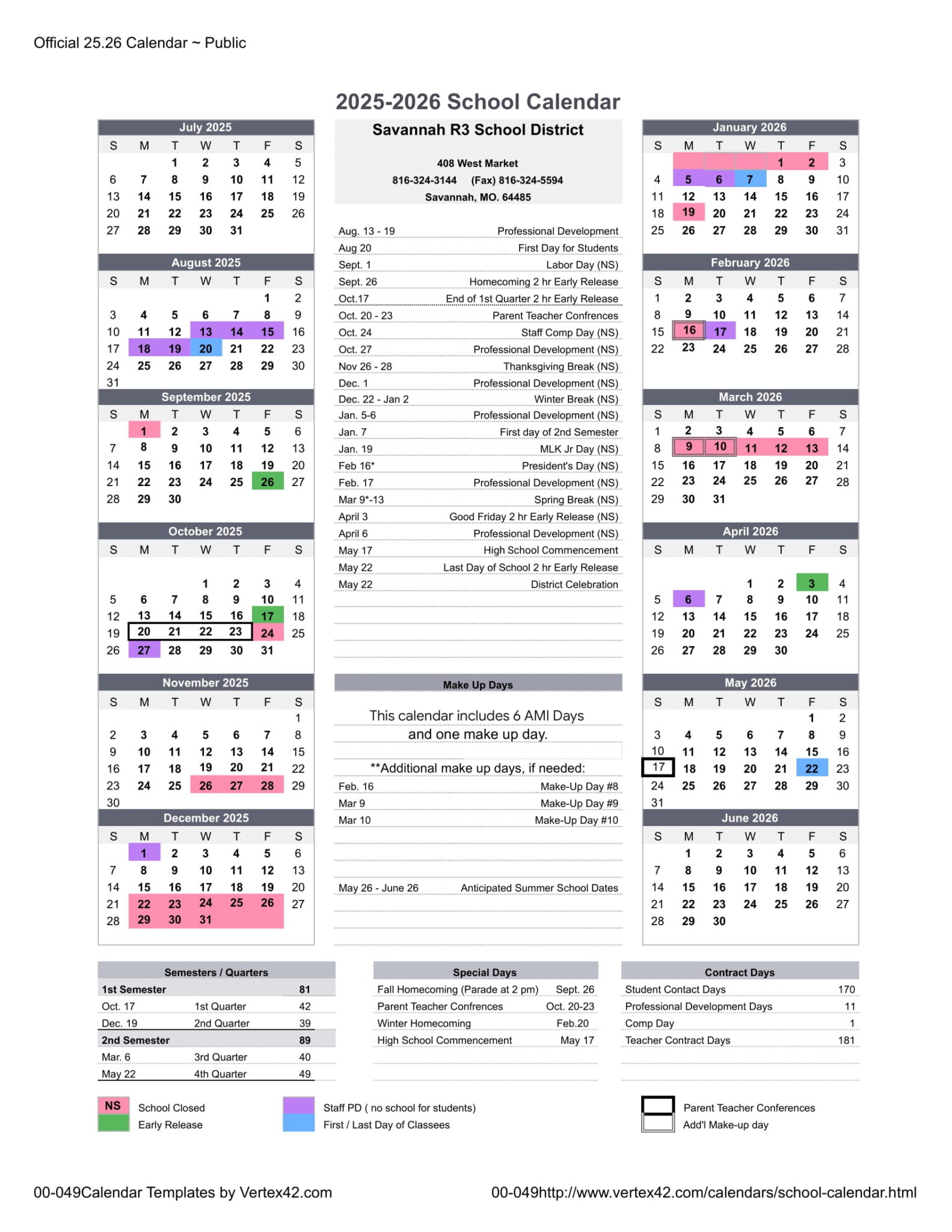 Savannah R III School District Calendar 25 26 Revised pdf EduCounty