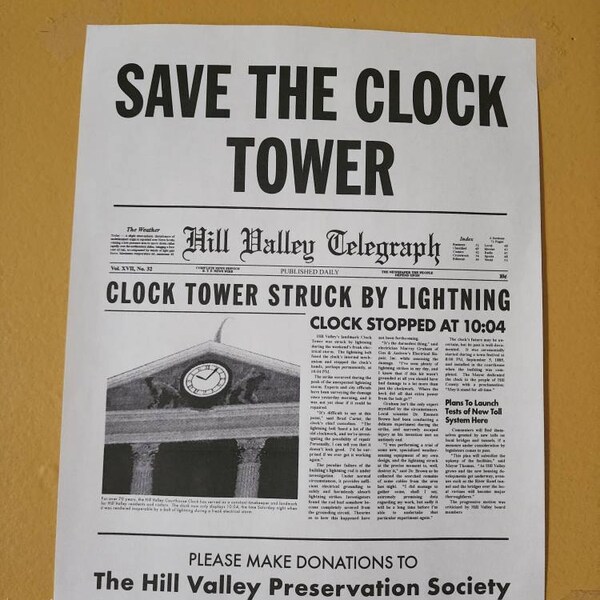 Save the Clock Tower Replica Flyer Back to the Future Etsy