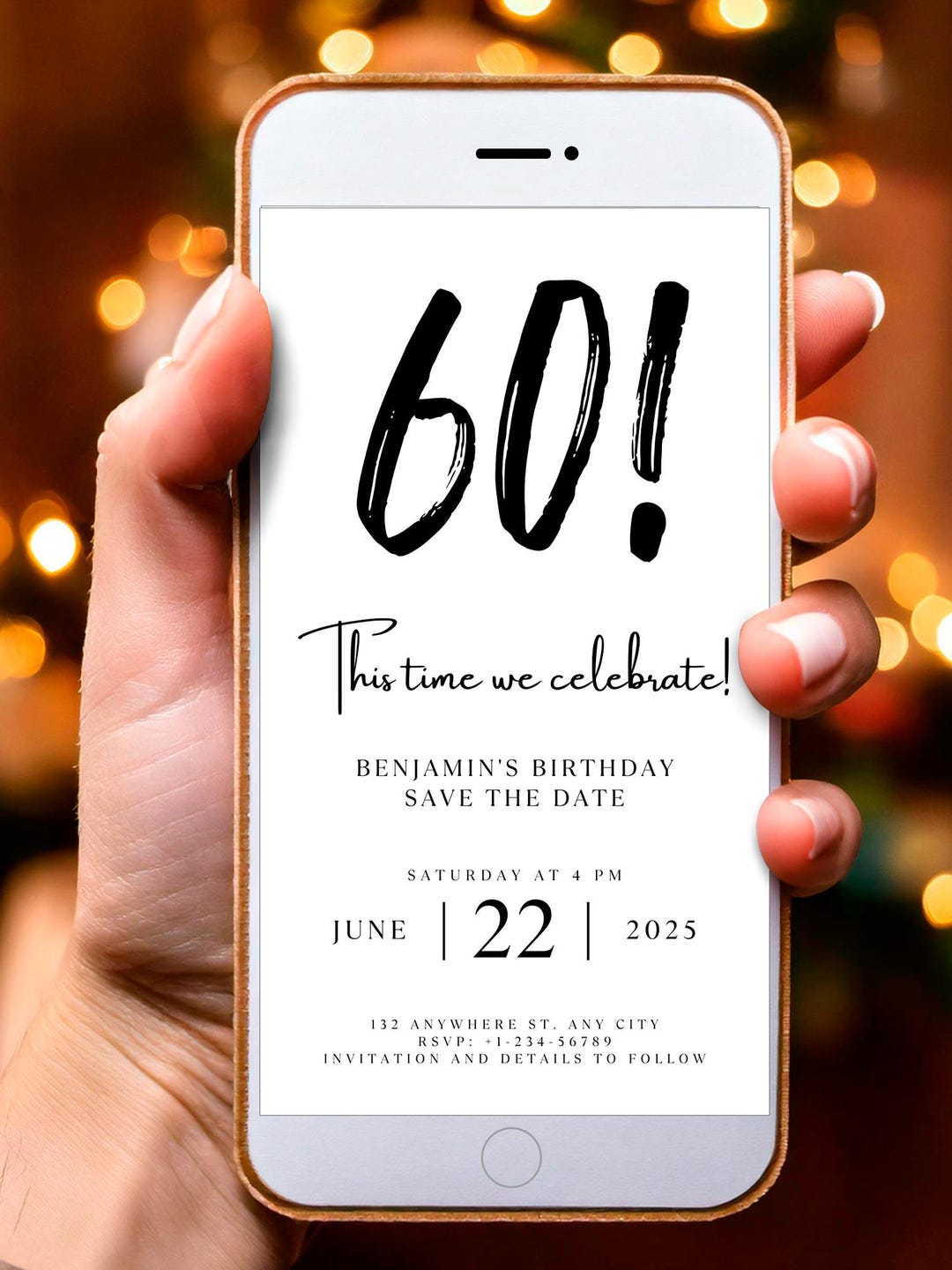Save the Date 60th Sixty Birthday Digital Invitation Phone Text
