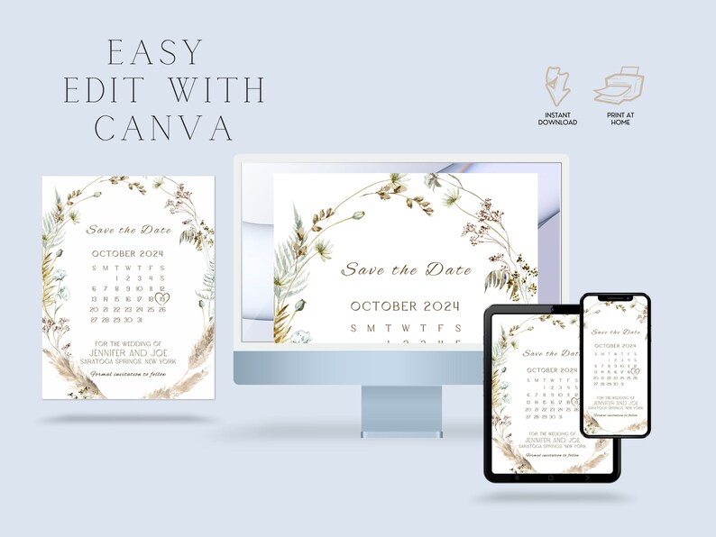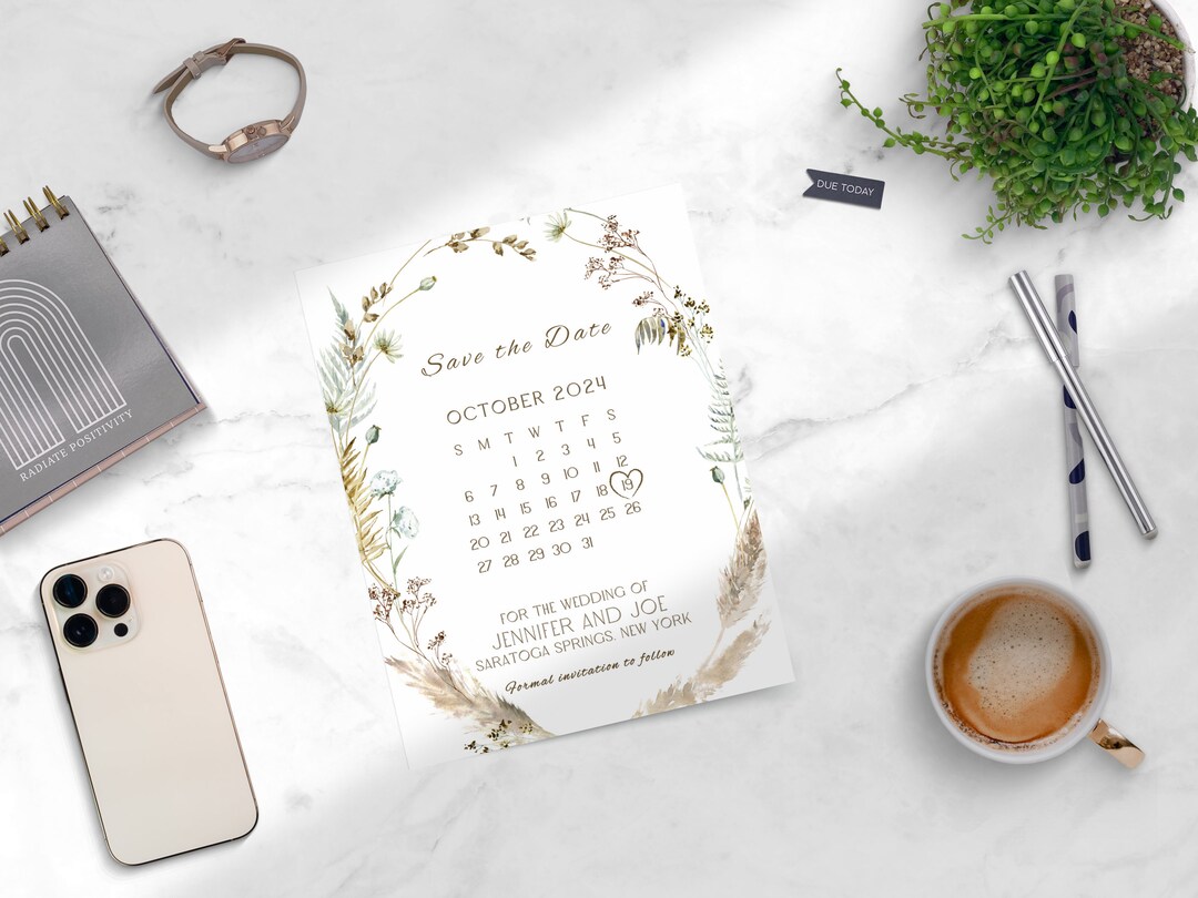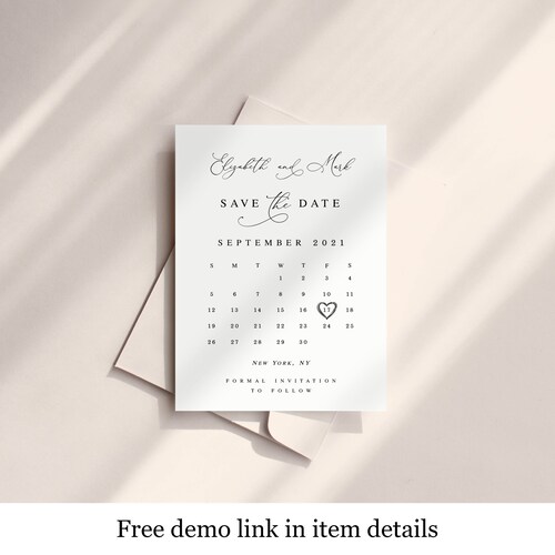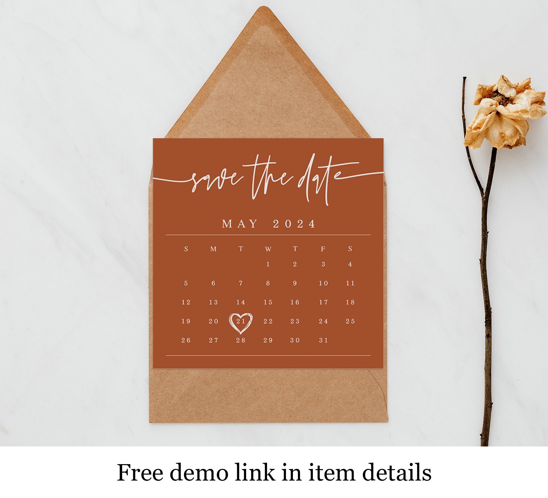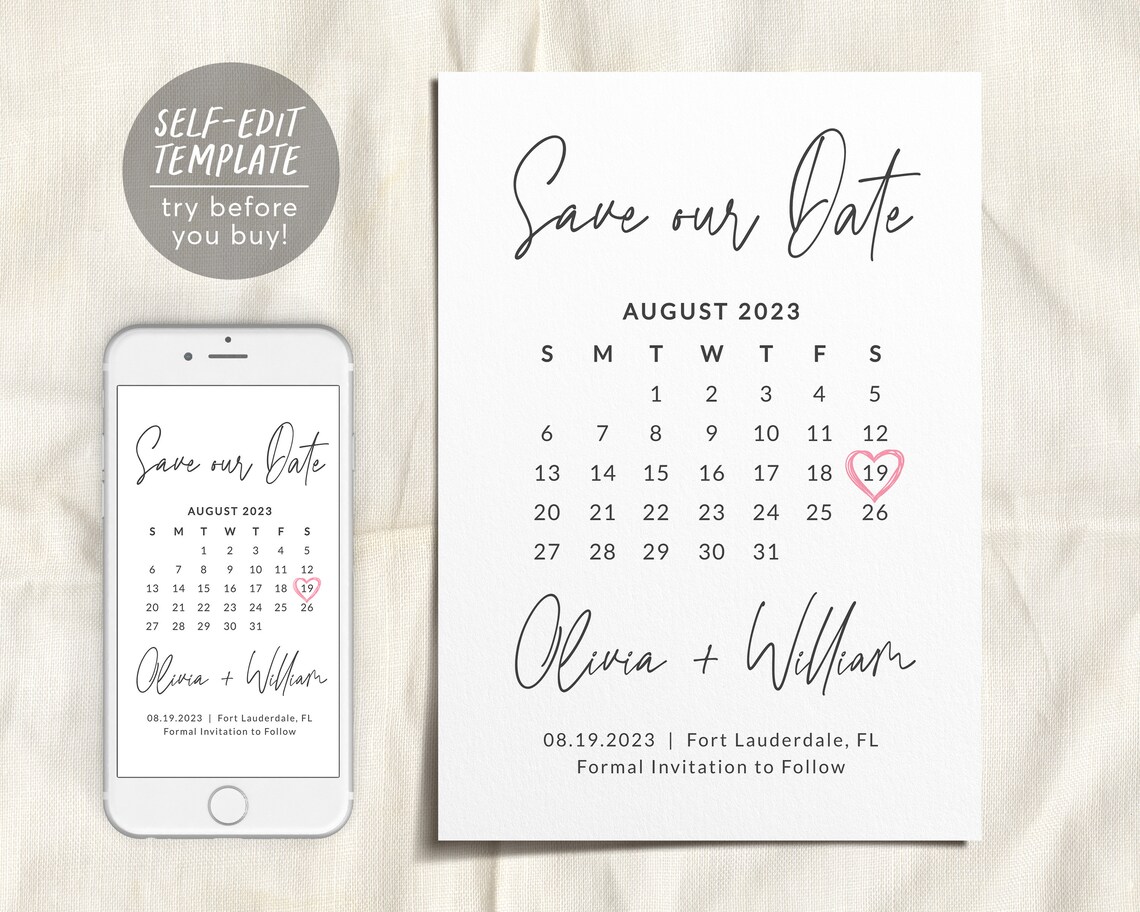 Calendar Save the Date Template Editable Invite Simple and Modern