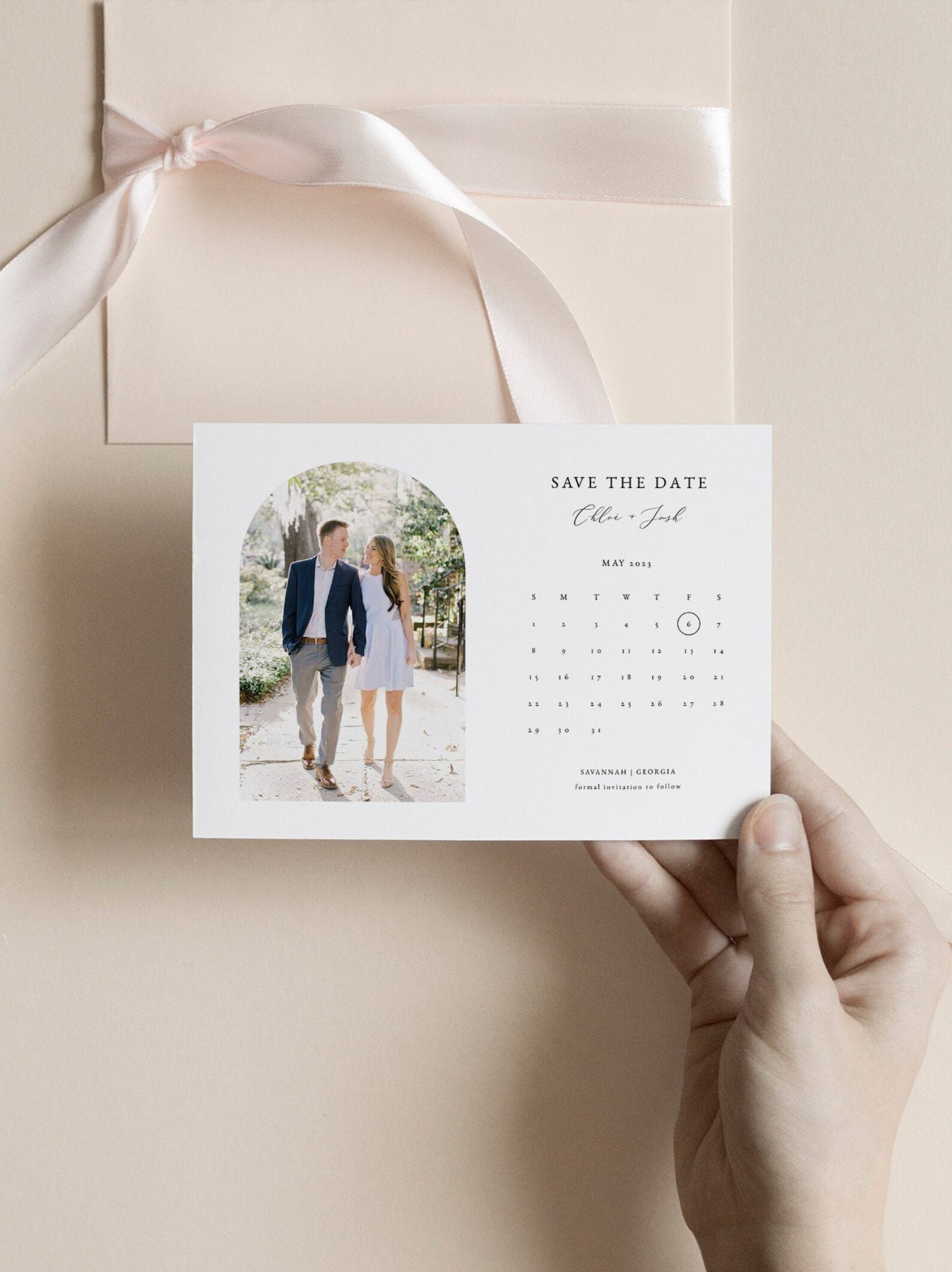 Minimalist Save the Date Calendar Template With Photo Boho Etsy