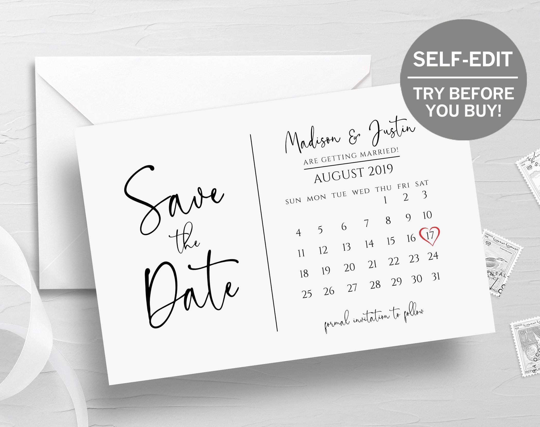 Editable Calendar Save the Date Template Save the Date Cards Etsy