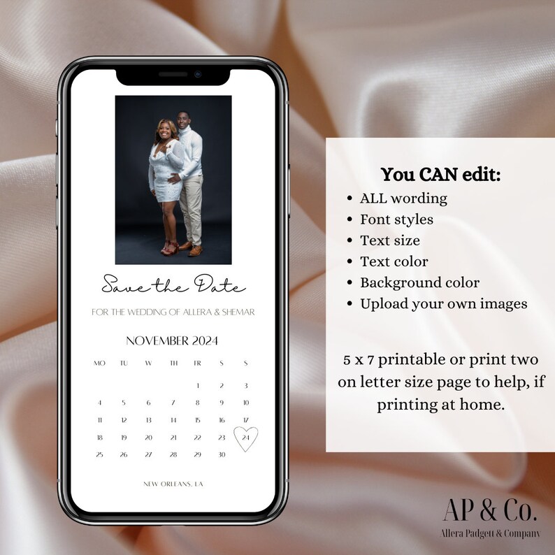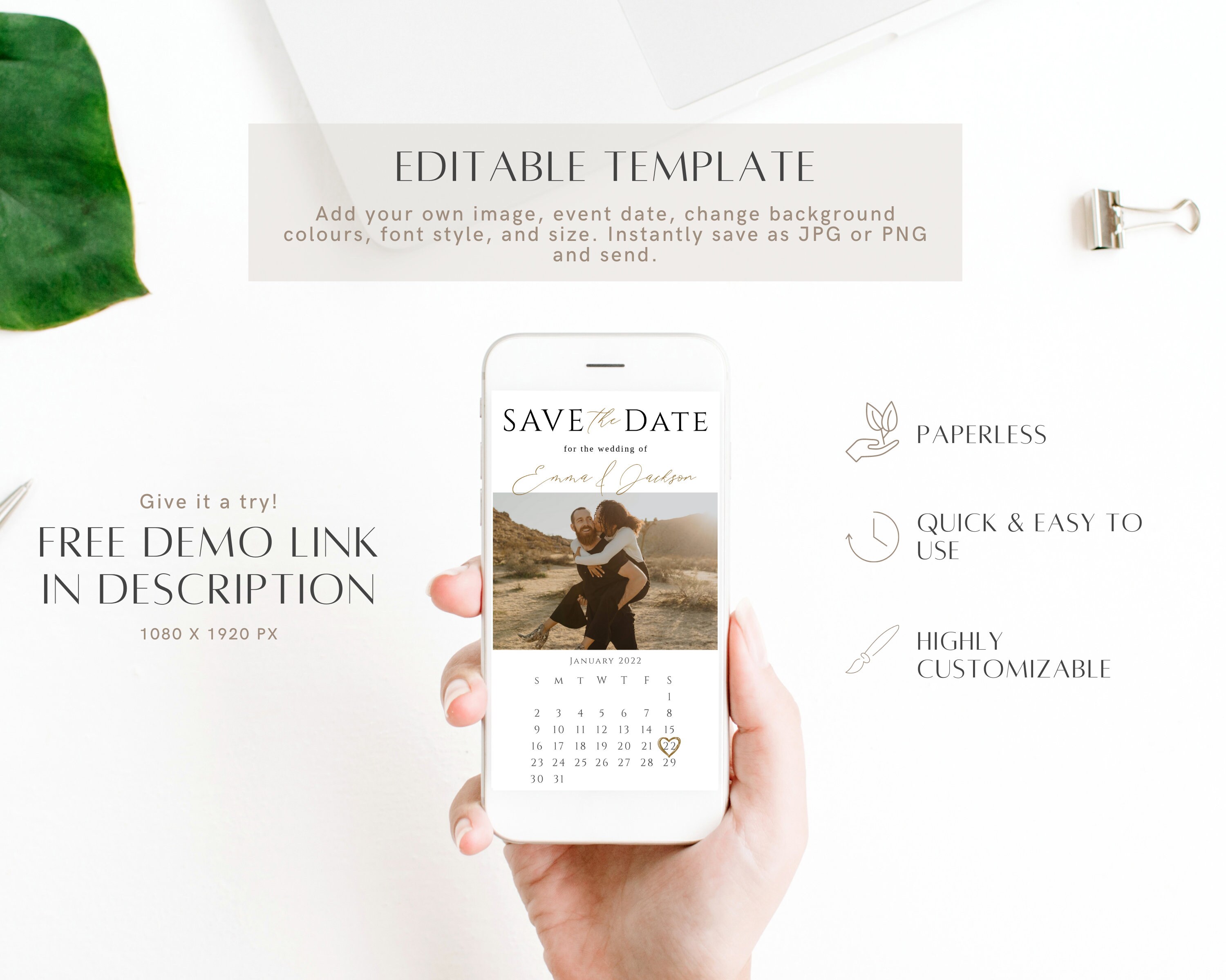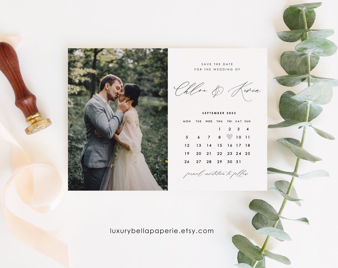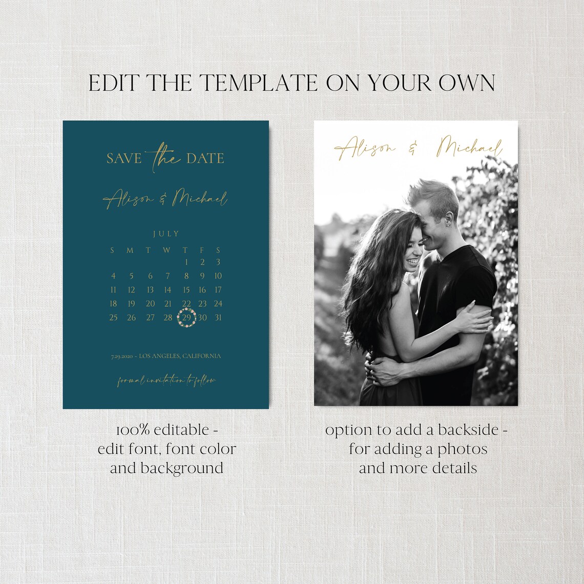 Calendar Save the Date Fully Editable Template With Photo Etsy