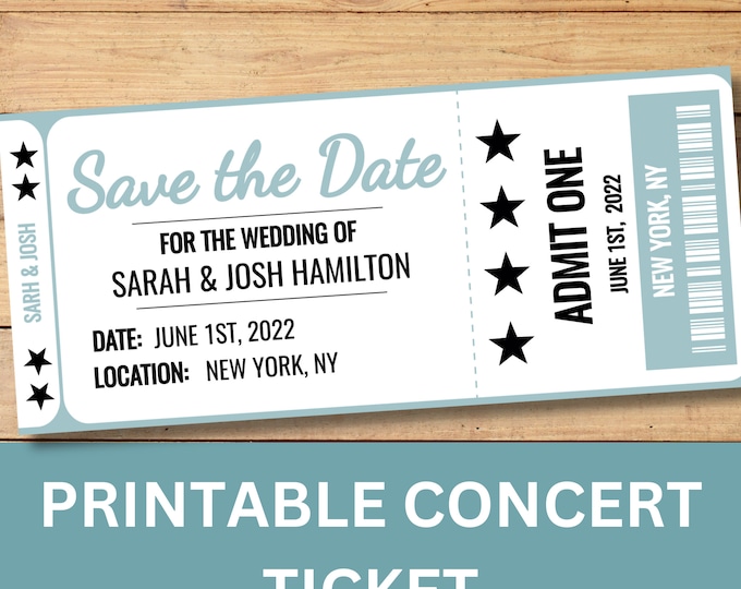 Save the Date Concert Ticket / DIY Printable PDF / Wedding Bat Etsy
