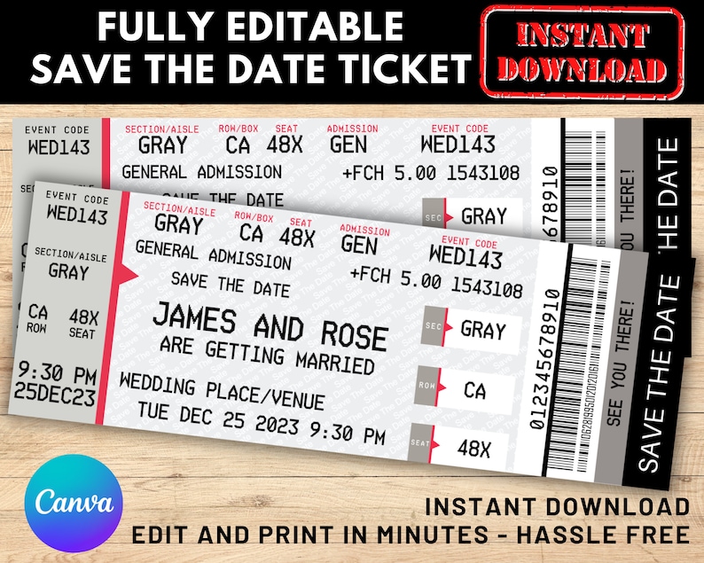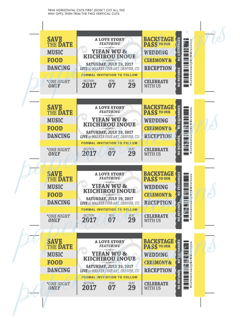 Save the Date Ticket Concert Ticket Template Personalized Event