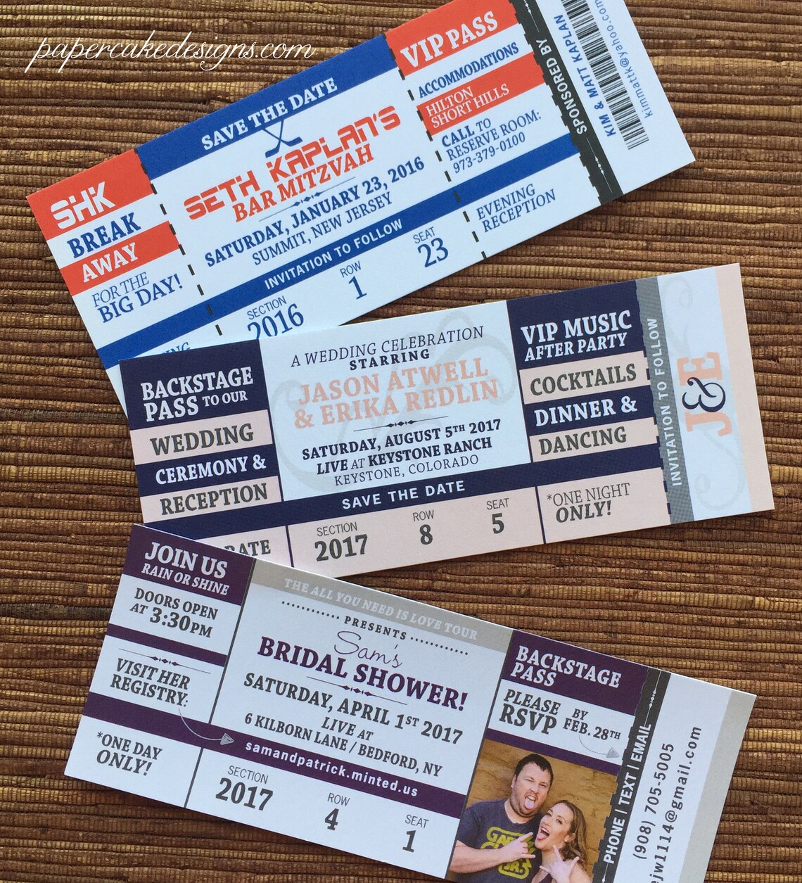 Custom Wedding Save the Date Concert Ticket Invitations W/ Envelopes
