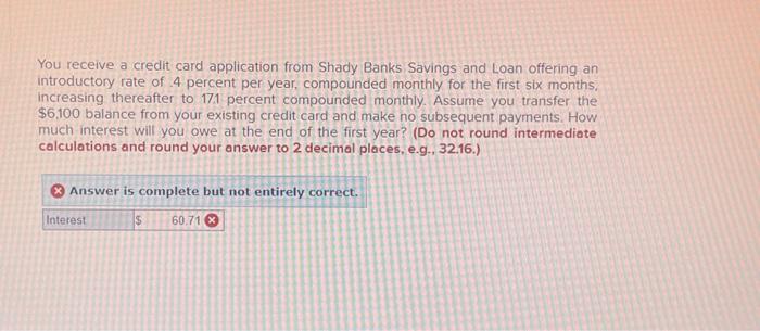 You receive a credit card application from Shady Banks Savings and Loan