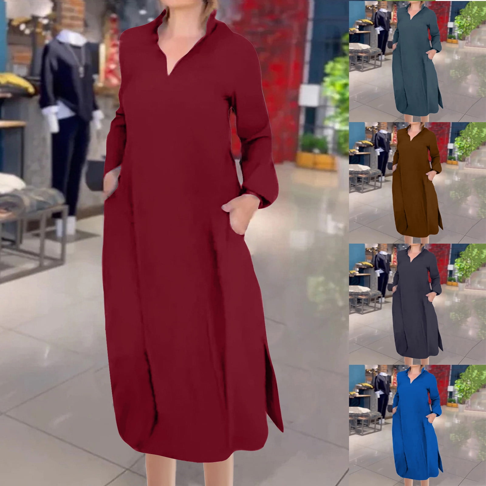 Antinious Plus Size Maxi Dresses for Women Long Sleeve V Neck Solid