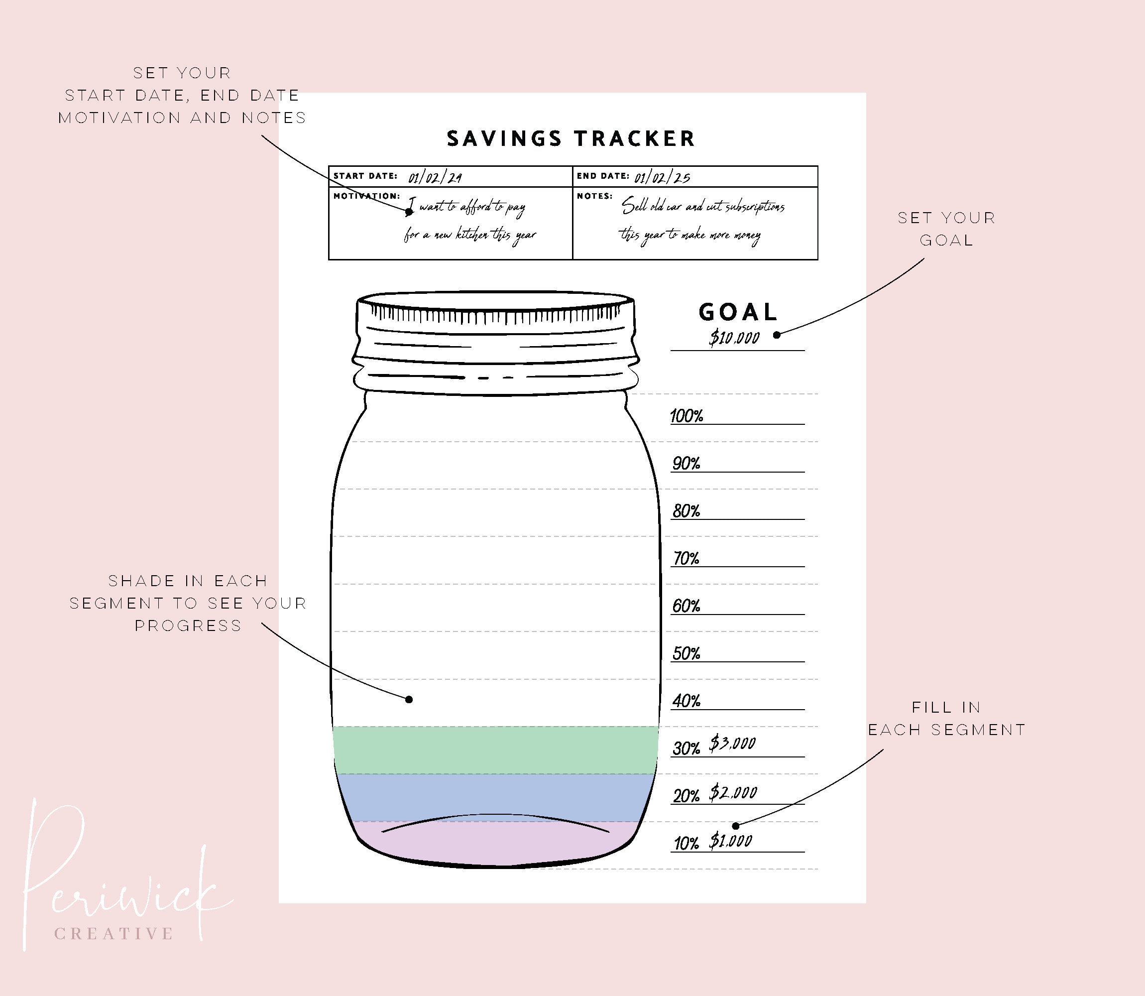 Mason Jar Savings Tracker Printable Savings Tracker Organiser Planner