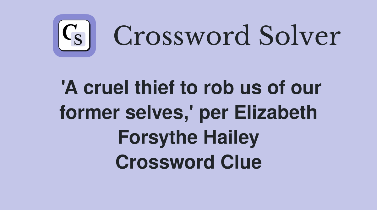 #39 A cruel thief to rob us of our former selves #39 per Elizabeth Forsythe