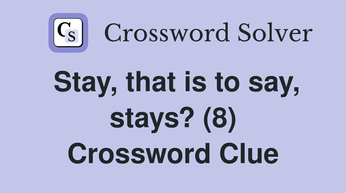 Stay that is to say stays? (8) Crossword Clue Answers Crossword