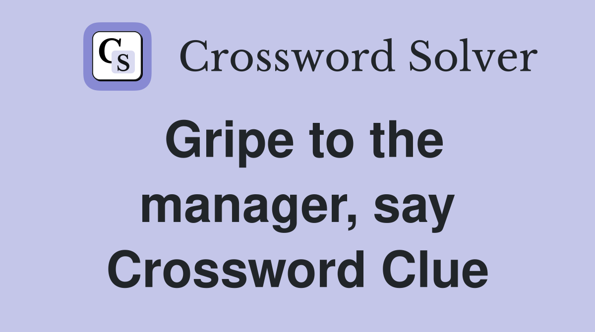 Gripe to the manager say Crossword Clue Answers Crossword Solver