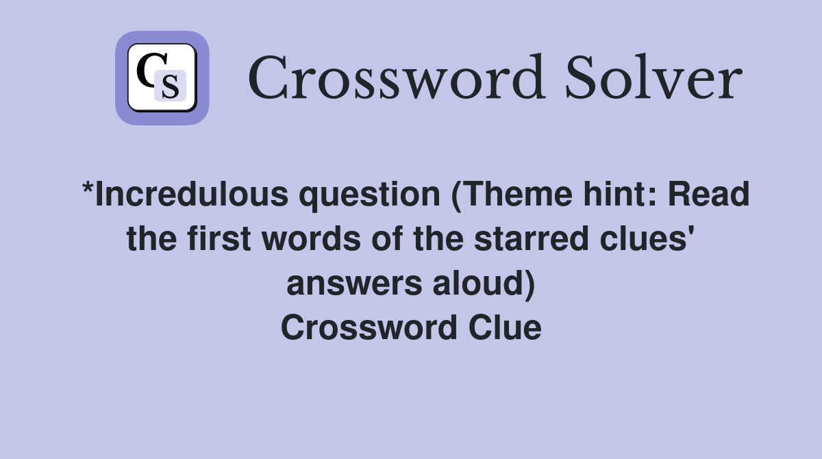 *Incredulous question (Theme hint: Read the first words of the starred