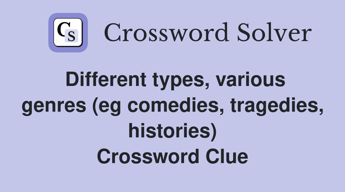 Different types various genres (eg comedies tragedies histories
