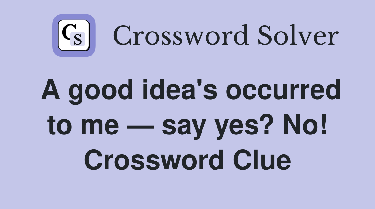 A good idea #39 s occurred to me say yes? No Crossword Clue Answers