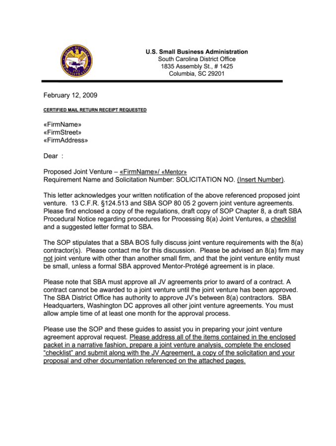 Sba Joint Venture Template prntbl concejomunicipaldechinu gov co