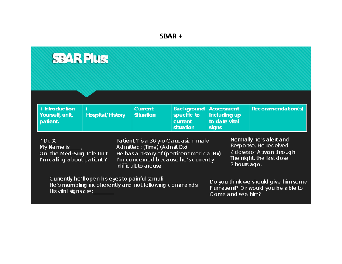 SBAR Plus 1 SBAR SBAR SBAR Plus: Introduction Yourself unit