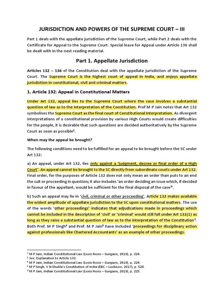 Appellate Jurisdiction of SC PDF Appeal Supreme Courts