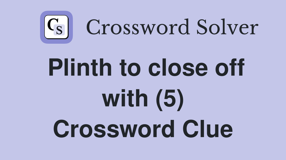 Plinth to close off with (5) Crossword Clue Answers Crossword Solver