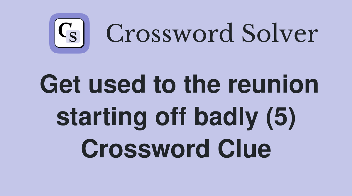 Get used to the reunion starting off badly (5) Crossword Clue Answers