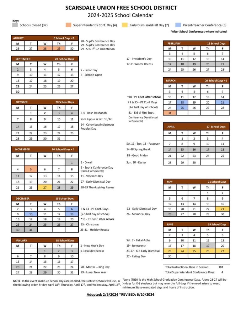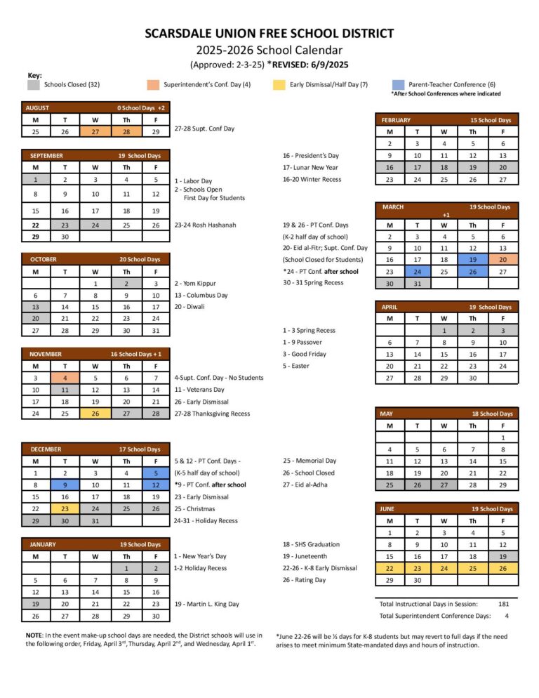 Scarsdale Public Schools Calendar 2025 2026 PDF Holidays