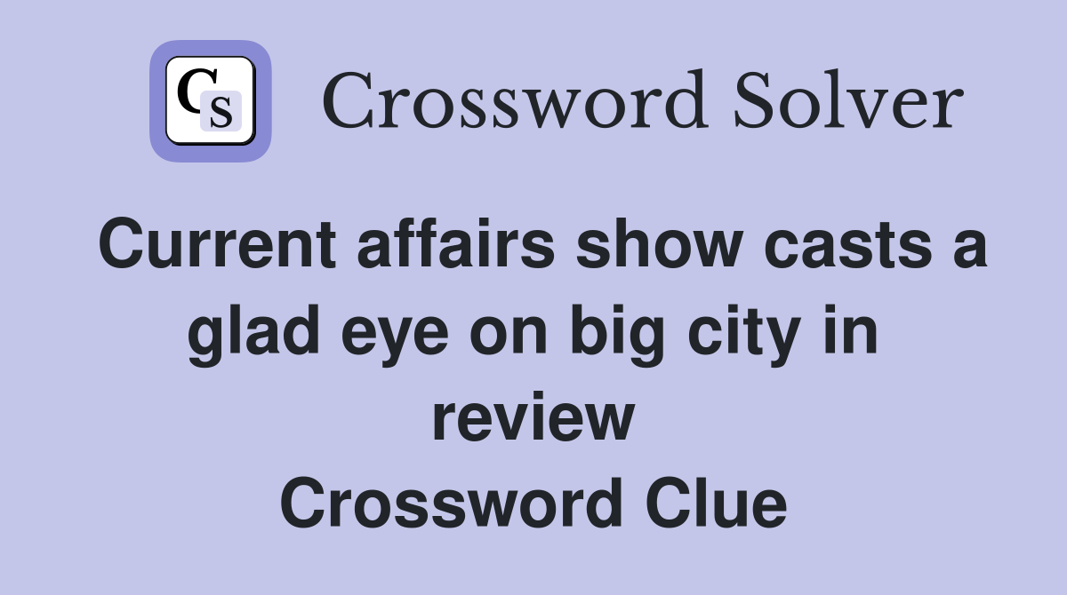 Current affairs show casts a glad eye on big city in review Crossword