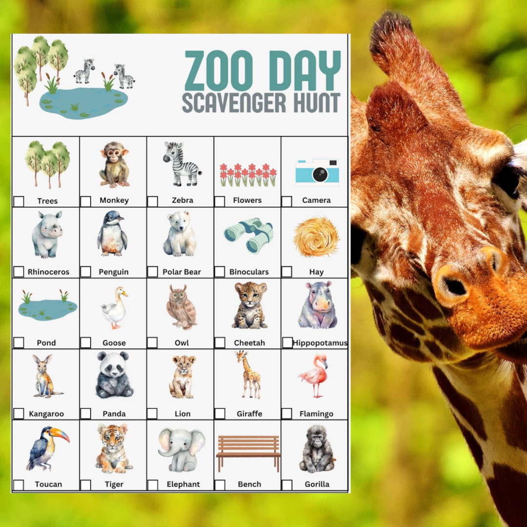Zoo Day Scavenger Hunt for Kids Printable Family Fun Game for Etsy